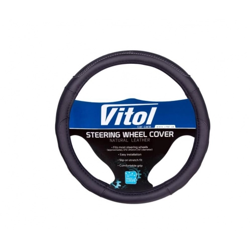 чехол руля L кожзам (39 - 41 см) черный Vitol 2 перфор. вставки, белая строчка