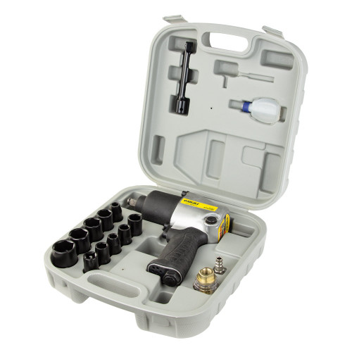 гайковерт пневматический 1/2" 640Нм, 7500об/мин головки ударн. 10 шт удлин., масленка,штуцер, кейс