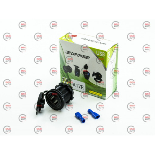 гнездо врезное 2 USB 2,1A+2,1A, 12-24В, крышка, с подсветкой красной