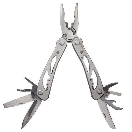 Мультиинструмент 14в1 + биты (чехол) Sigma 4375421 является универсальным помощником, который в состоянии выполнить все основные ремонтные работы в экстренном формате. Он станет отличным вариантом для рыбалки, походов, охоты, а также незаменимым инструментом в Вашей машине или в домашнем быту. Изготовленный с высокой точностью из самых лучших материалов: рабочие части из нержавеющей стали 3Cr13, остальные части инструмента из нержавеющей стали 2Cr13, благодаря чему достигается максимальная эффективность и долгий срок службы. Ручка изготовлена из алюминия, покрыта матовым покрытием.