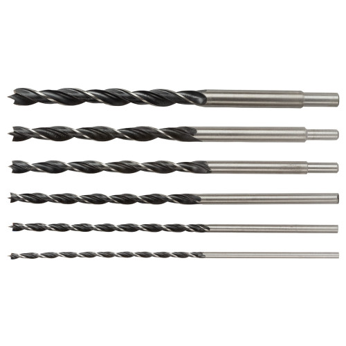 Набір свердл по дереву спіральних триточкових 6шт (?6; 8; 10; 12; 14; 16мм; довжина 300мм) SIGMA (1301321) призначений для свердління отворів невеликого і середнього діаметру в дереві, фанері, ДСП, клеєних щитах і пластиці. Подовжене центруюче вістря оснащене конусним центром. З боків розташовані підрізувачі. Особлива форма спіралі сприяє швидкому відводу стружки, що значно знижує нагрів свердла і підвищує продуктивність свердління. Для уникнення відколів на виході необхідно підкладати невеликий брусок або дошку. Забезпечує швидке і точне просвердлювання.