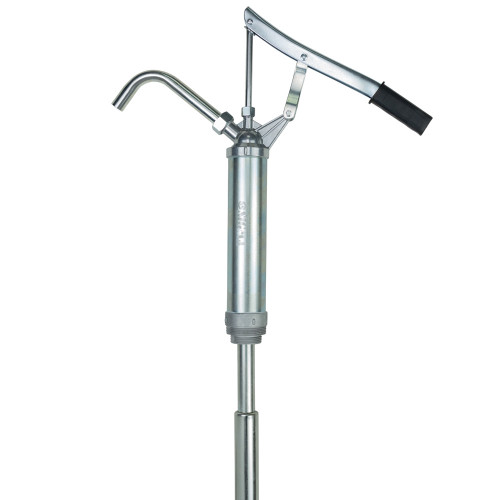 Насос ручной плунжерный для перекачки масла из бочки (18л/мин) SIGMA (6301321) – предназначен для перекачивания масла и топлива. Также может использоваться для заправки техники топливом. простой и удобный для использования там, где нет возможности использовать электрический насос. Конструкция насоса позволяет прикладывать минимальные усилия при использовании. Все уплотнители выполнены из маслобензостойкой резины, а поршень - литой, цинковый. Насос имеет телескопическую напорную трубу с двумя разными резьбами для крепления, что позволяет использовать его с бочками от 50 до 205 литров. Производительность насоса 18 л/мин. Разрешенные жидкости: жидкости на основе нефти, мазут топочный, моторные масла, дизельное топливо. Запрещенные жидкости: бензин, авиационный керосин, материалы на основе воды, антифриз, растворитель, кислоты. Характеристики: Идеальный для ручного скачивания трансмиссионных, моторных масел и маслянистых жидкостей низкой и средней вязкости из бочек Прочный и долговечный металлический корпус Все уплотнители и сальники насоса изготовлены с качественной нитрильной резины, а поршень и всасывающий клапан - из стали Две резьбы для крепления