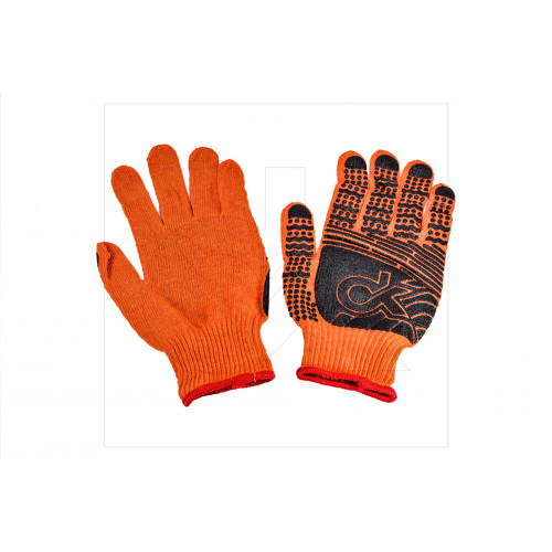 рукавиці трикотажні із ПВХ покрит., 10 клас, розмір 11, помаранч. чорна крапка