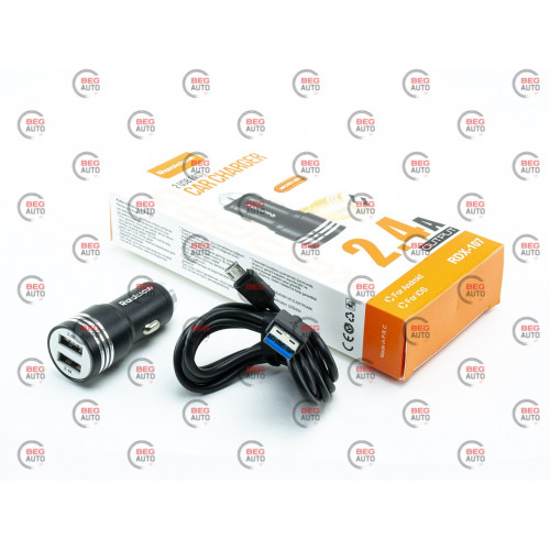 зарядка от прикуривателя Reddax 2USB 2.4А круг черный + кабель USB - Micro USB Евро